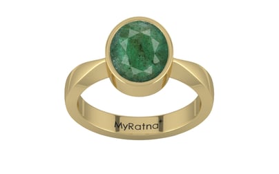 A Ashtadhatu Ring Studded In Original Zambian Emerald (Panna) Gemstone, Fine Quality