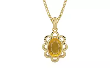 A Ashtadhatu Pendant Studded In Original Yellow Sapphire (Pukhraj), Prime Quality Gemstone