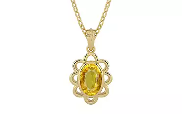A Ashtadhatu Pendant Studded In Original Yellow Sapphire (Pukhraj), Rare Quality Gemstone
