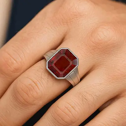 Premium Sterling Silver Hessonite Garnet Men’s Ring