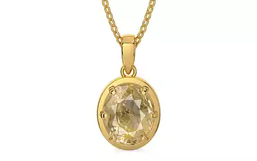 A Gold Pendant Studded In Original Yellow Sapphire (Pukhraj) Gemstone, Fine Quality