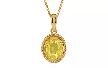 A Gold Pendant Studded In Original Yellow Sapphire (Pukhraj) Gemstone, Limited Quality
