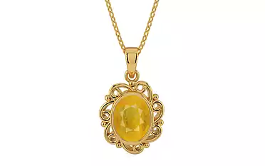 A Gold Pendant Studded In Original Yellow Sapphire Gemstone, Fine Quality