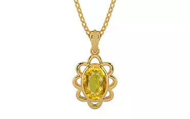 A Gold Pendant Studded In Original Yellow Sapphire (Pukhraj), Rare Quality Gemstone