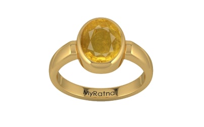 A Gold Ring Studded In Original Thailand Yellow Sapphire (Pukhraj) Gemstone, Prime Quality