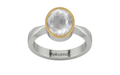 A Silver with Gold Cap Ring Studded In Original White Sapphire Gemstone, Limited Quality