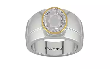 A Silver with Gold Cap Ring Studded In Original White Sapphire, Rare Quality Gemstone