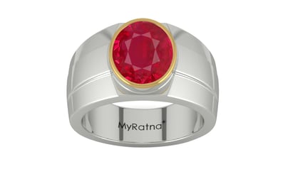 A Silver with Gold Cap Ring Studded In Original Ruby (Manik), Limited Quality Gemstone