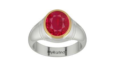 A Silver with Gold Cap Ring Studded In Original Ruby (Manik) Gemstone, Limited Quality