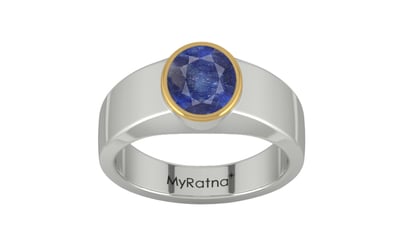 A Silver with Gold Cap Ring Studded In Original Blue Sapphire Gemstone, Fine Quality