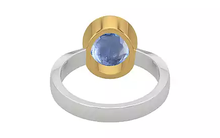 A Silver with Gold Collet Ring Studded In Original Blue Sapphire Gemstone, Prime Quality