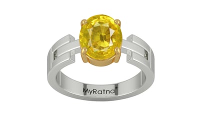 A Silver with Gold Collet Ring Studded In Original Thailand Yellow Sapphire (Pukhraj) Gemstone, Limited Quality