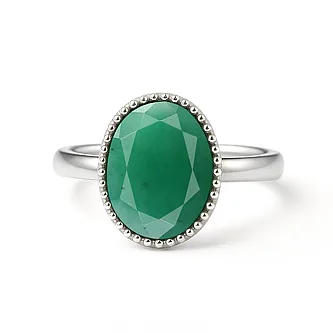 Designer Sterling Silver Emerald Gemstone Ring for Her