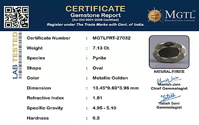 | Weight | 7.13 carat / 7.88 ratti / 1.43 grams |