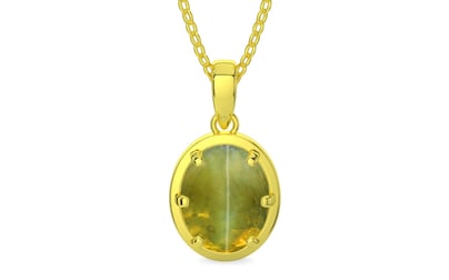 A Panchdhatu Pendant Studded In Original Cat's Eye (Lehsuniya) Gemstone, Rare Quality