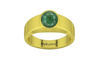 A Panchdhatu Ring Studded In Original Zambian Emerald (Panna) Gemstone, Fine Quality