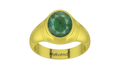 A Panchdhatu Ring Studded In Original Zambian Emerald (Panna) Gemstone, Fine Quality