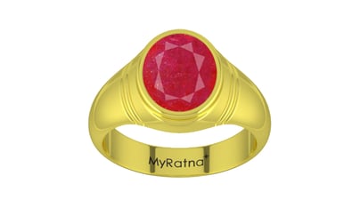 A Panchdhatu Ring Studded In Original Ruby (Manik) Gemstone, Prime Quality