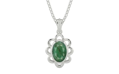A Sterling Silver Pendant Studded In Original Zambian Emerald (Panna), Fine Quality Gemstone