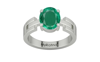 A Sterling Silver Ring Studded In Original Zambian Emerald (Panna) Gemstone, Rare Quality