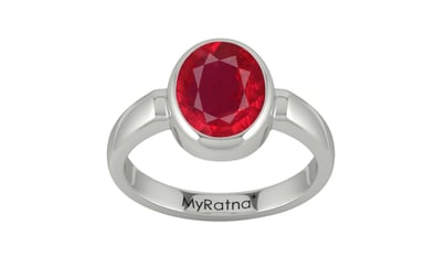 A Sterling Silver Ring Studded In Original Ruby (Manik) Gemstone, Rare Quality