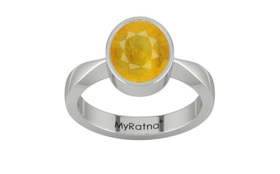 A Sterling Silver Ring Studded In Original Thailand Yellow Sapphire (Pukhraj) Gemstone, Fine Quality