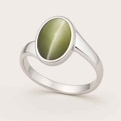 Stylish 925 Sterling Silver Cat's Eye Gemstone Ring For Female