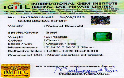 It is especially handpicked by our team of gem experts. It comes in light to dark green color, with transparent & semi-transparent (with inclusions & without inclusions). It has correct cut in lieu of color to make finished gem homogeneous, making it perfect gem for jewellery and for astrological benefits. Every natural Emerald comes with a verity of inclusions, because of the combination of chemical compounds, and presence of inclusions is accepted world-wide.