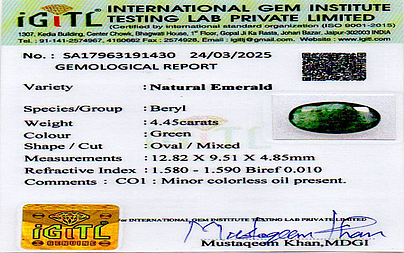 It is especially handpicked by our team of gem experts. It comes in light to dark green color, with transparent & semi-transparent (with inclusions & without inclusions). It has correct cut in lieu of color to make finished gem homogeneous, making it perfect gem for jewellery and for astrological benefits. Every natural Emerald comes with a verity of inclusions, because of the combination of chemical compounds, and presence of inclusions is accepted world-wide.