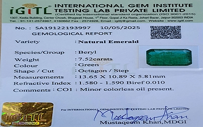 It is especially handpicked by our team of gem experts. It comes in light to dark green color, with transparent & semi-transparent (with inclusions & without inclusions). It has correct cut in lieu of color to make finished gem homogeneous, making it perfect gem for jewellery and for astrological benefits. Every natural Emerald comes with a verity of inclusions, because of the combination of chemical compounds, and presence of inclusions is accepted world-wide.